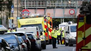 அந்த பக்கெட்டுக்குள் சில ஒயர்கள் இணைக்கப்பட்டிருந்ததால் இது தீவிரவாத தாக்குதலாக இருக்கலாம் என பெருநகர லண்டன் போலீசார் விசாரணை நடத்தி வந்தனர். இந்த தாக்குதலுக்கு ஐ.எஸ். தீவிரவாத இயக்கம் பொறுப்பேற்றது. இந்த தாக்குதல் தொடர்பாக இதுவரை இரண்டு பேரை போலீசார் கைது செய்துள்ளனர்.