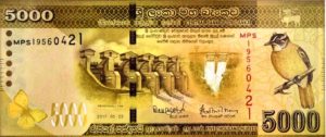 நிதியமைச்சர் மங்கள சமரவீரவின் கையொப்பமிடப்பட்ட 5,000 ரூபா பணத்தால் வெளியிடப்பட்டுள்ளது.