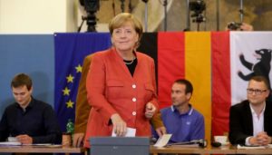 இந்நிலையில், பெர்லின் நகரில் உள்ள வாக்குச்சாடியில் சான்சலர் ஏஞ்சலா மெர்கல் கணவர் ஜோவாசிம் சாவருடன் வந்து தனது வாக்கை பதிவுசெய்தார். முன்னதாக அந்நாட்டு குடியரசுத்தலைவர் பிராங்-வால்டர் ஸ்டெயின்மேயர் தனது வாக்கை பதிவுசெய்தார்.