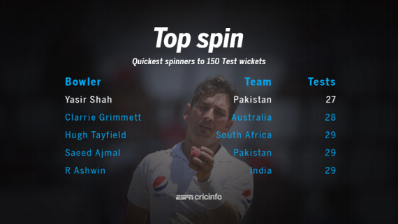 பாகிஸ்தான் அணியின் சுழற்பந்து வீச்சாளர் யசீர் ஸா குறைந்த டெஸ்ட் போட்டிகளில் 150 வீக்கட்டுக்களை பெற்று இந்த சாதனையை படைத்துள்ளார்.