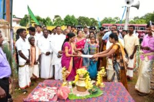 தொடர்ந்து அரங்க நிகழ்வில் முல்லையூர் பார்த்தீபன் எழுதிய பண்பாட்டு பெருவிழா இறுவெட்டினை பிரதேச செயலாளர் வழங்க மாவட்ட அரசாங்க அதிபர் பெற்றுக் கொண்டார்