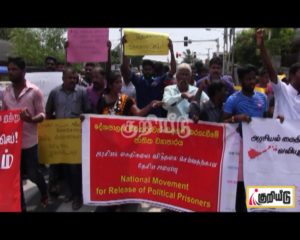யாழ்ப்பாண நகரின் மத்தியில், கைதிகளின் விடுதலைக்காக போராடி வரும் அருட்தந்தை சத்திவேல் தலைமையில் நடைபெற்ற போராட்டத்தில் அரசியல் கட்சிகளும் இணைந்து கொண்டன.