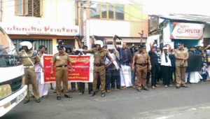 யாழ். இந்துக்கல்லூரிக்கு முன்னால் தமிழ்த் தேசிய மக்கள் முன்னணியுடன் இணைந்து வடமாகாணசபை உறுப்பினர் சிவாஜிலிங்கம் உள்ளிட்ட குழுவினர் கறுப்புக்கொடிகளை ஏந்தி போராட்டத்தில் ஈடுபட்டு வருகின்றனர்.
