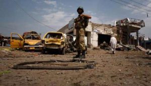 பாகிஸ்தானில் ஆப்கானிஸ்தான் எல்லைக்கு அருகே குர்ரம் ஏஜென்சி பகுதியில் நேற்று துணை ராணுவ வீரர்களை குறிவைத்து சக்தி வாய்ந்த குண்டு வெடிப்பை பயங்கரவாதிகள் அரங்கேற்றினர். இதில் சிக்கி கேப்டன் ஹஸ்னன் மற்றும் 3 சிப்பாய்கள் பலியாகினர்.
