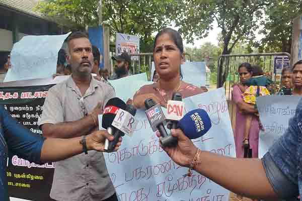 கிளிநொச்சியில் அதிபருக்கு எதிராக ஆர்ப்பாட்டம்