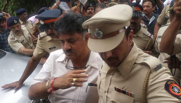 அதிருப்தி எம்எல்ஏக்களை சந்திப்பதற்காக மும்பை சென்ற கர்நாடக மந்திரி டி.கே.சிவக்குமார், ஓட்டல் முன்பு அமர்ந்து போராட்டத்தில் ஈடுபட்டதால் கைது செய்யப்பட்டார்.