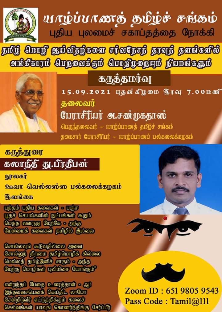 தமிழ் மொழி ஆய்விதழ்களை சர்வதேச தரவுத்தளங்களில் அங்கீகாரம் பெற வைக்கும் பொறிமுறையும் நியமங்களும்! Posted by தென்னவள் - September 12, 2021 தமிழ் மொழி ஆய்விதழ்களை சர்வதேச தரவுத்தளங்களில் அங்கீகாரம் பெற வைக்கும் பொறிமுறையும் நியமங்களும்